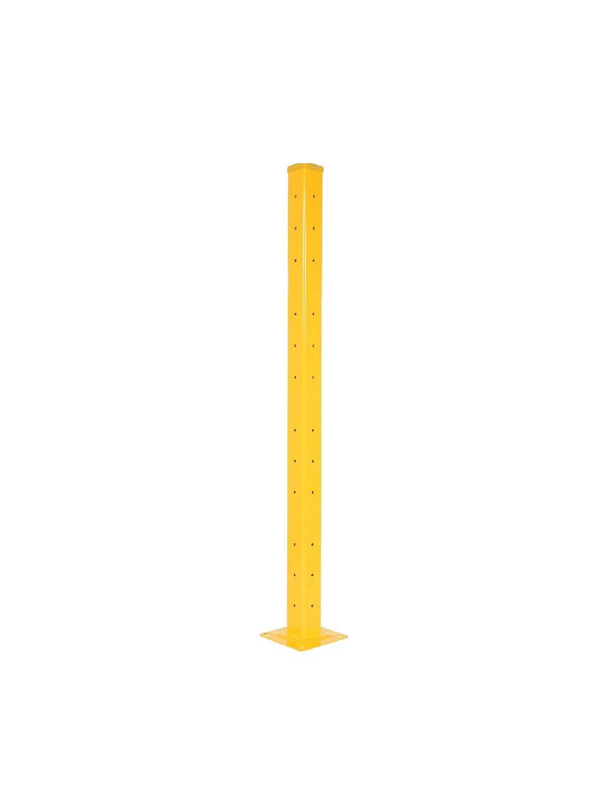 Create a modular system to protect equipment, inventory, and individuals from damage or injury. Corrugated rails are constructed from 1/8" thick material, made for high impact resistance indoors and out. Posts are constructed of 1/4" thick material with mounting holes on all four sides for use as corner or center posts. Posts measure 4" x 4" with a 10" square steel base plate that is 5/8" thick. Bolts and washers are provided with individual rail sections. Provide easy accessibility with our drop-in style rails. Slide rail sections into post saddles for simple assembly. Each drop-in style rail section includes two brackets. Bolt-on style rails are designed for permanent installation. Optional gate available for easy access in and out of work area. Galvanized material available. FOB Shipping Point.