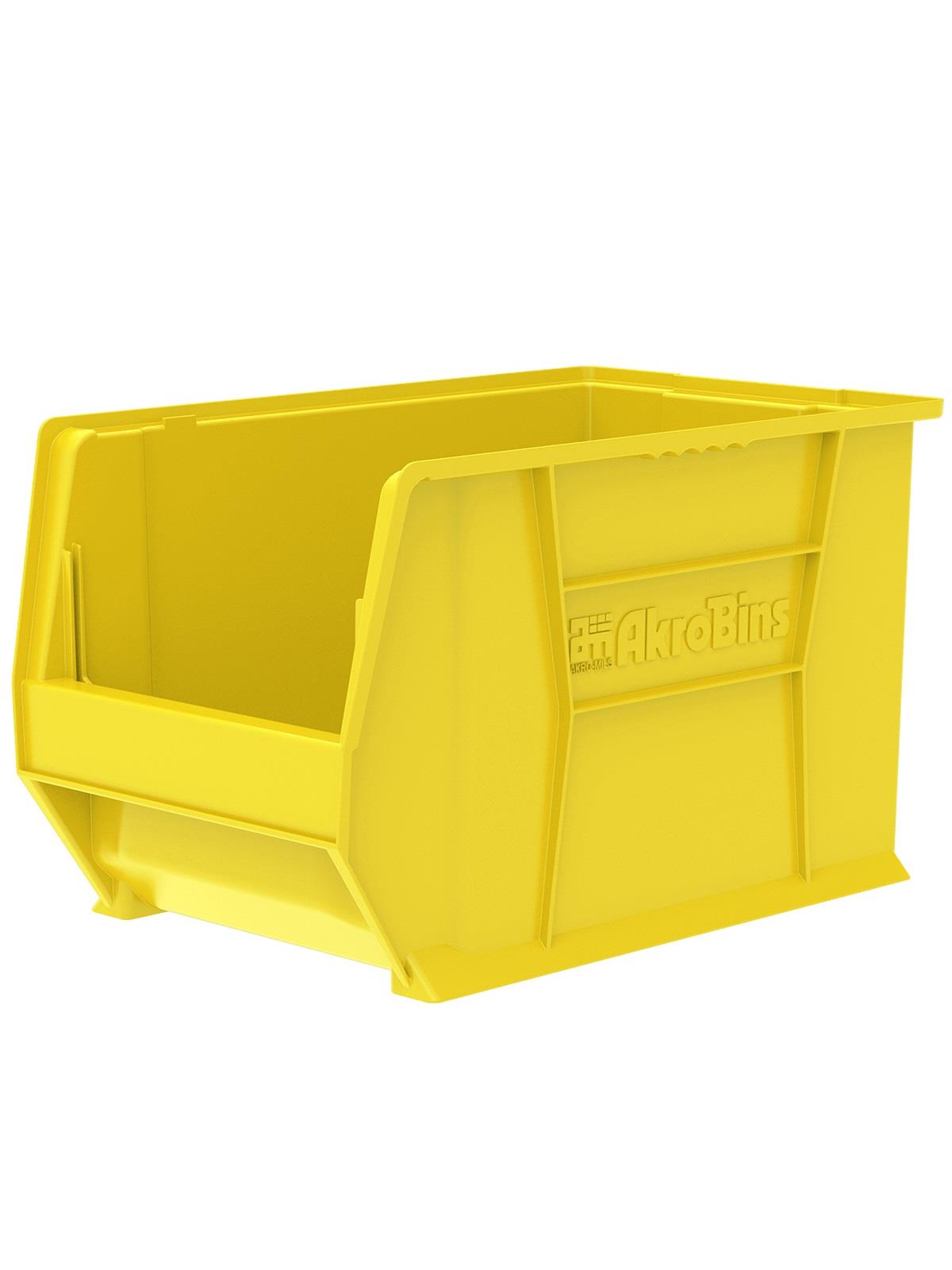 • Heavy-duty bins securely stack atop each other -- or sit on shelving.