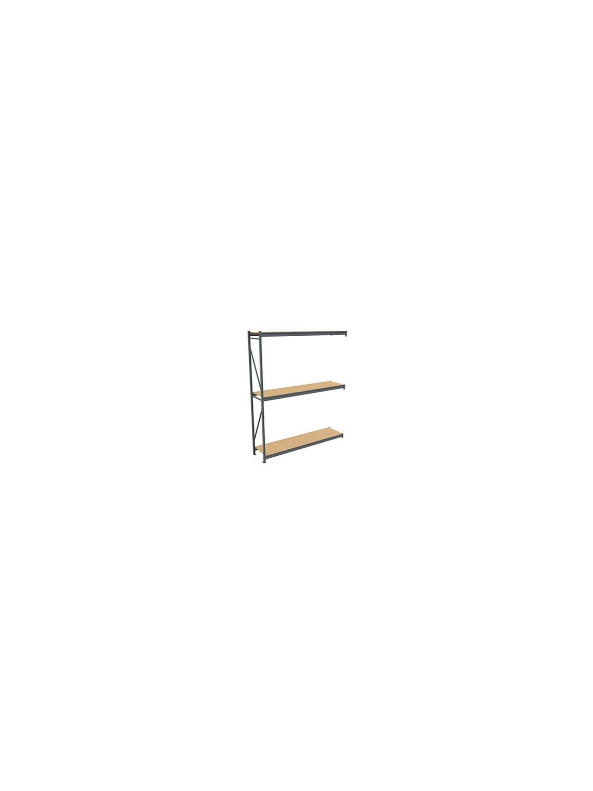 Features adjustable shelves on 2" increments for maximum use of vertical space. Assembly is quick and easy -- beams attach to the frames in seconds without tools. Rolled formed steel beams provide support at front and rear of shelf edges. Additional support is provided by front-to-back center braces. Racks are available in heights of 72", 96" and 120"; widths of 48", 72" and 96" and depths of 24", 36" and 48". Select particleboard decking or corrugated steel decking. Starter units and add-on units have 3 shelf levels.  Additional shelf levels are available to increase capacity. Begin each row of shelving with a starter and use add-on units to complete row. Medium Gray powder-coated paint finish. Note -- bulk storage racks should be hand loaded only. FOB Shipping Point.