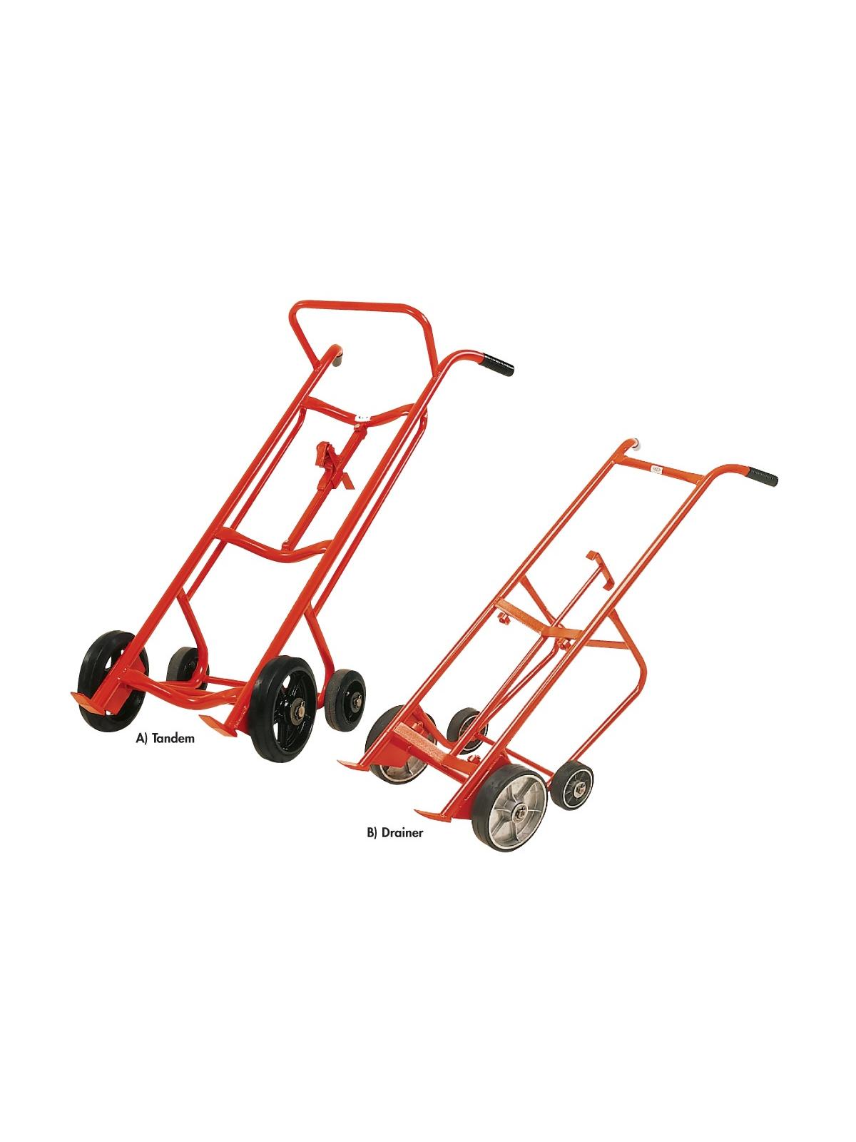 Dual purpose chime hook (tandem only) handles both steel or fiber drums. Trucks stand upright both loaded and unloaded. Adjustable chime hook. Husky trucks handle up to 1,000 lbs. Drainer style designed to dispense liquids from 55 gal. drum into a 5 gal. container. 14" drain height. FOB Shipping Point.