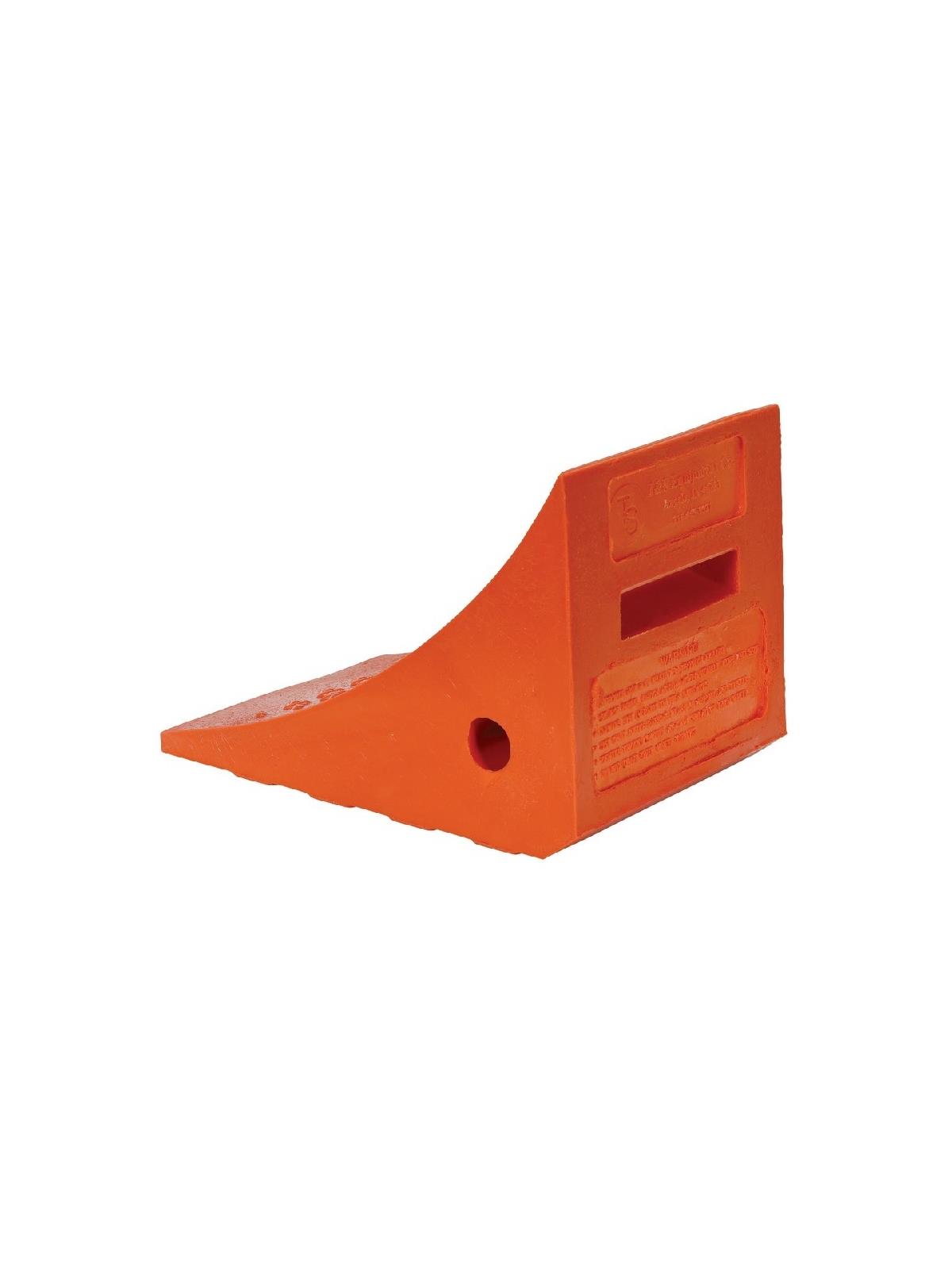 Bright orange for greater visibility. Incoming and outgoing drivers can easily see chock for added safety. Tread on chock face provides better grip. Extreme capacity models featured. FOB Shipping Point.