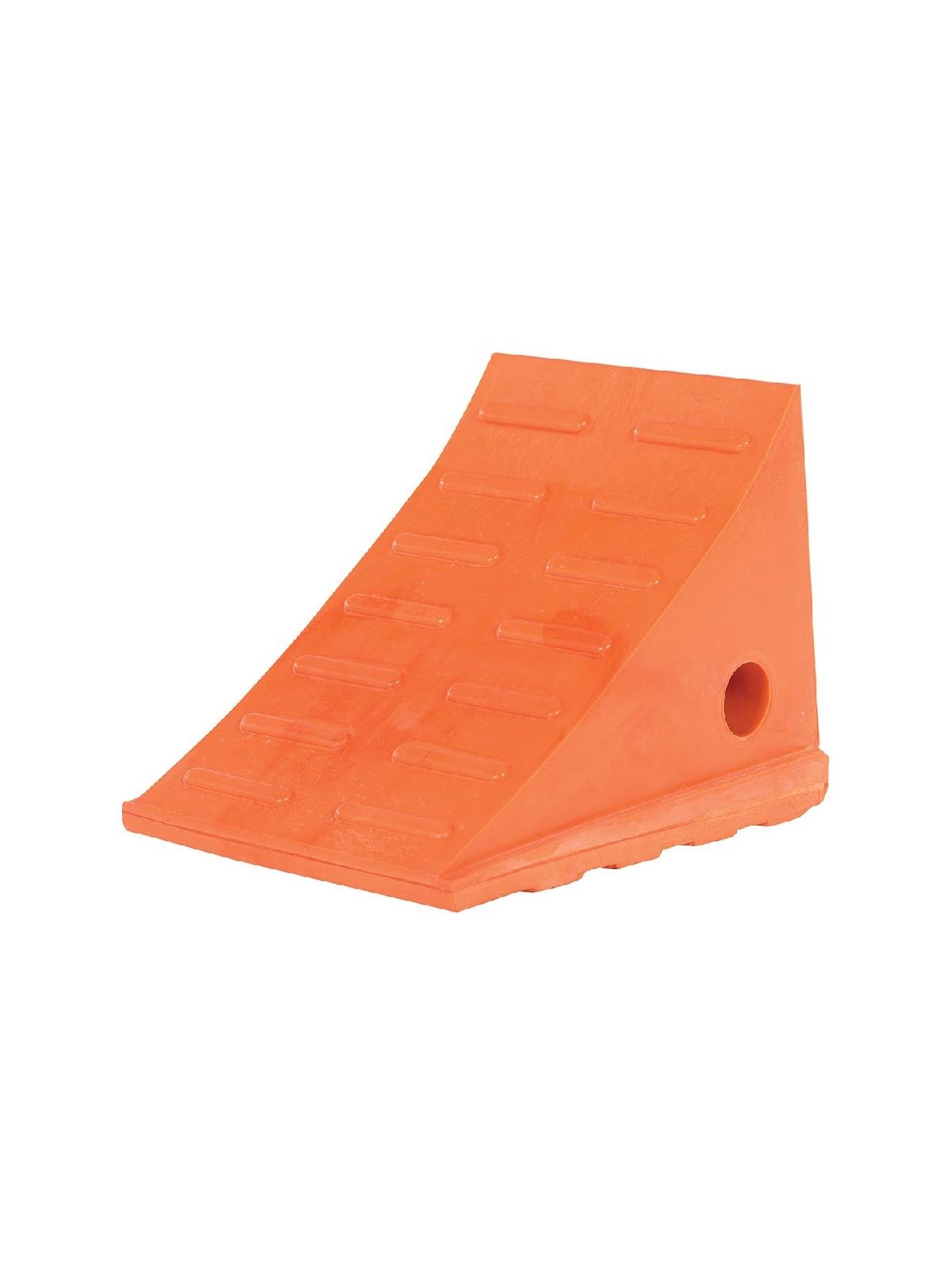 Bright orange for greater visibility. Incoming and outgoing drivers can easily see chock for added safety. Tread on chock face provides better grip. Extreme capacity models featured. FOB Shipping Point.