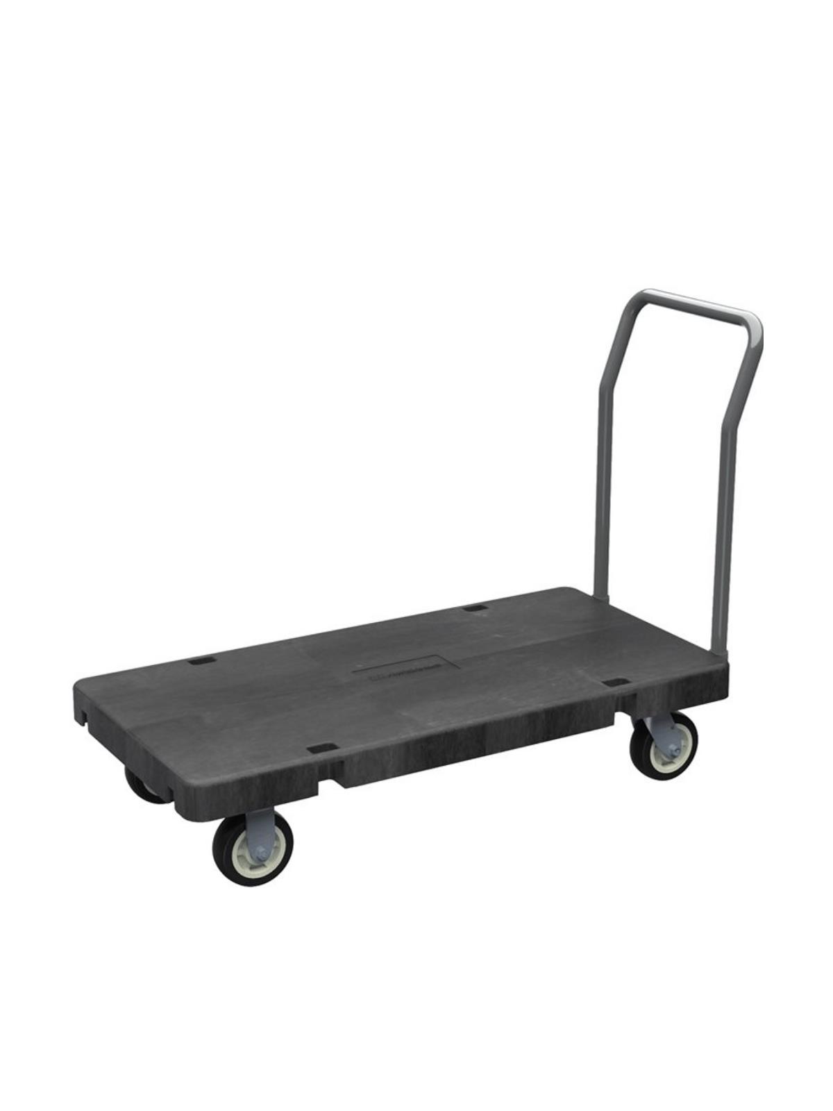 Heavy-duty 2000 lb. capacity with steel reinforcements and extra structural foam ribs under the deck add strength and stability for your toughest loads. Choose from a caster ready platform truck or a truck with 2 swivel and 2 fixed 6" non-marking polyurethane casters. Removable heavy-gauge steel open swayback handle. FOB Shipping Point.
