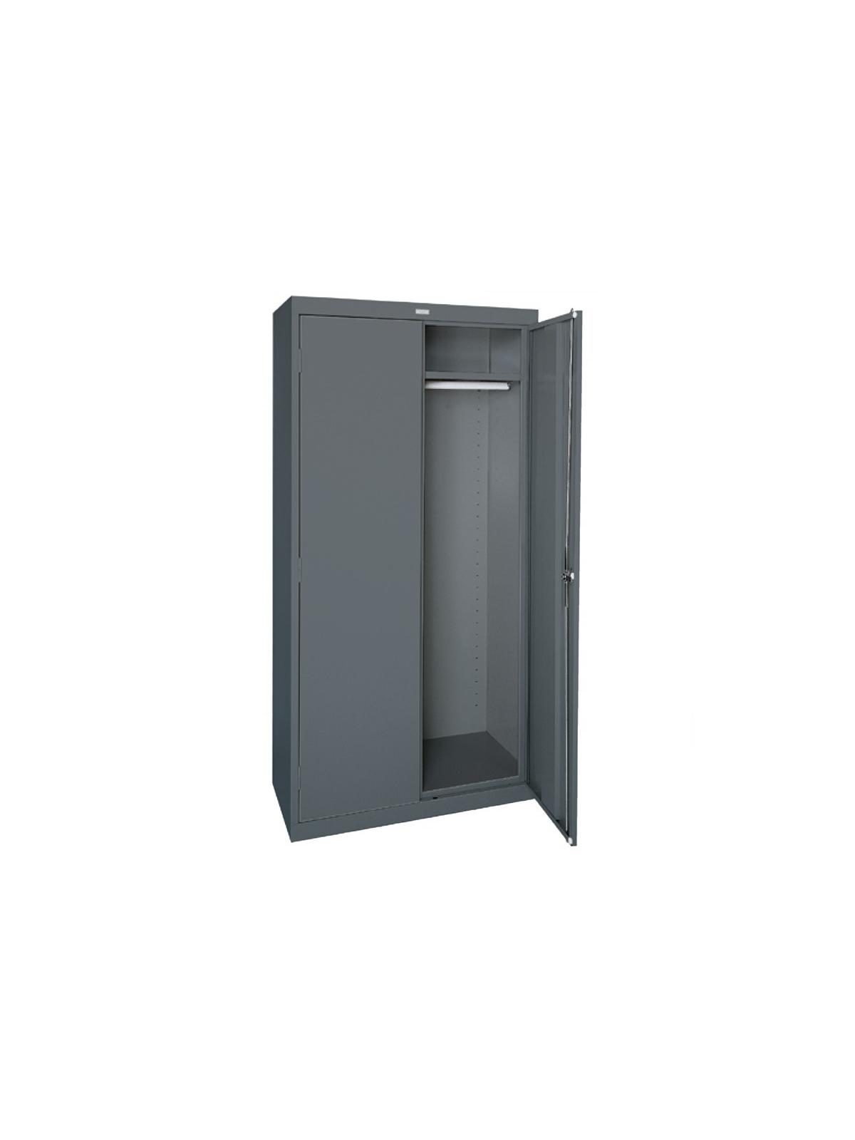 Includes full wide shelf for small item storage and sturdy garment rod. Uses contemporary designed three point recessed locking handle to secure belongings. Available in five standard colors: Charcoal (-02), Dove Gray (-05), Putty (-07), Textured Black (-09), Blue (-06) and Textured Red (-01). Custom colors available for an upcharge - call for information. FOB Shipping Point.