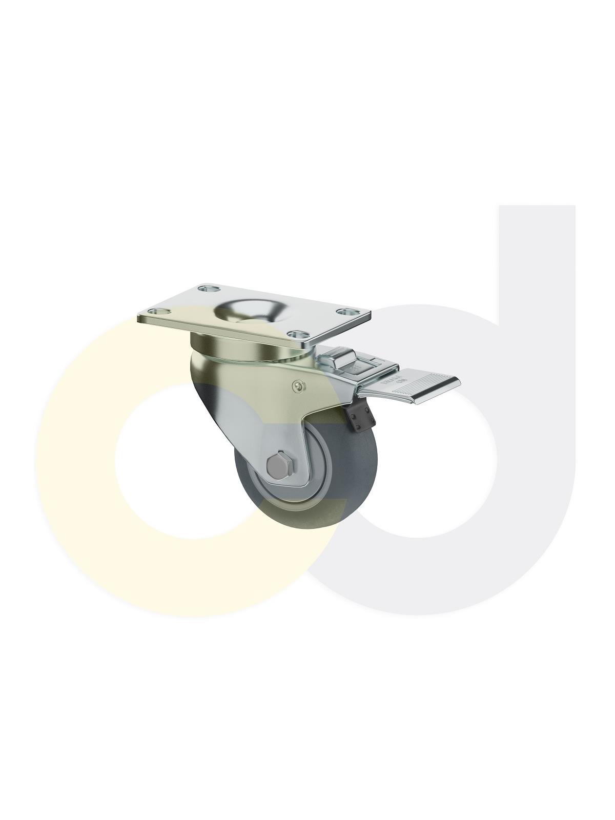 Description 3 x 1-1/4" Zinc-Plated, Swivel Caster w/ Total Lock Brake