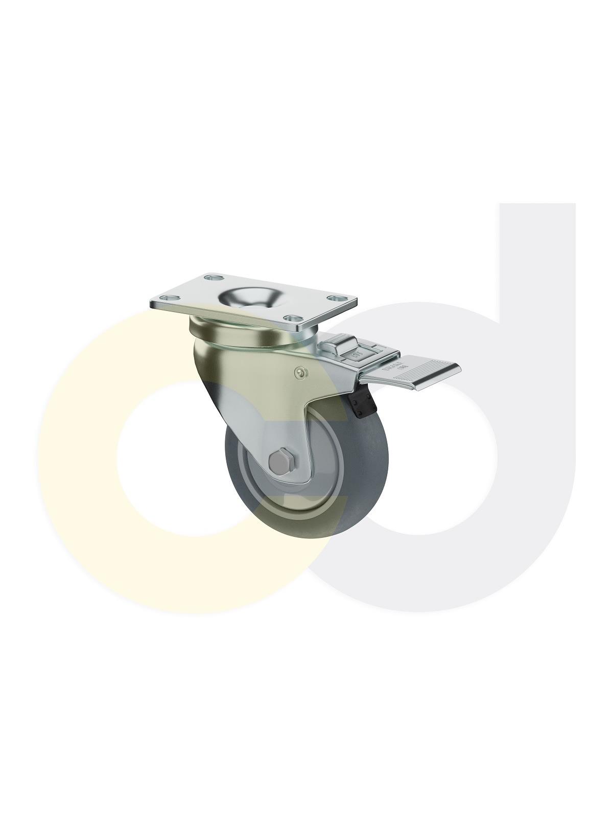 Description 3-1/2 x 1-1/4" Zinc-Plated, Swivel Caster w/ Total Lock Brake