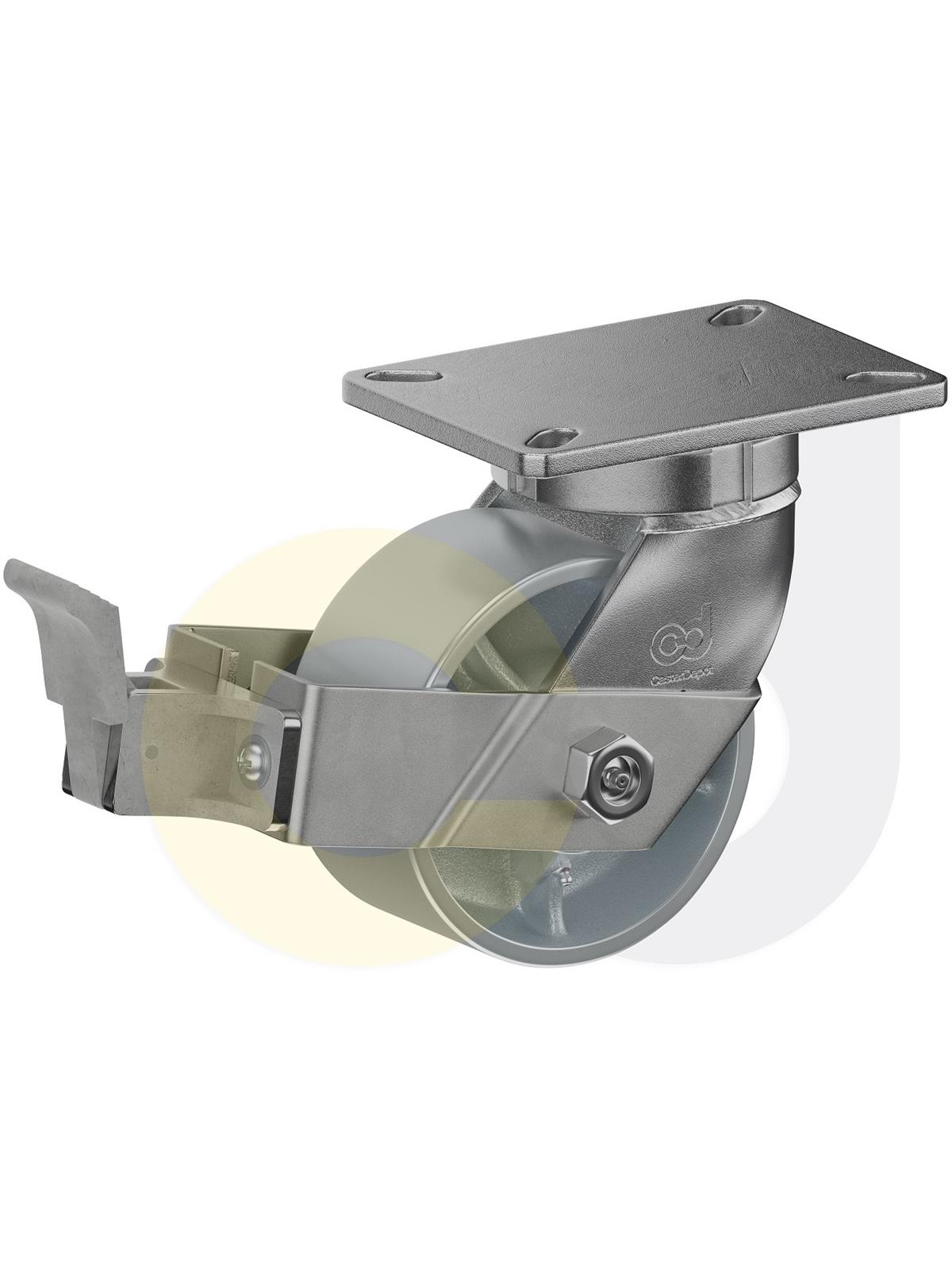 Description 6 x 3" Zinc-Plated, Kingpinless Swivel Caster w/ Face Contact Brake