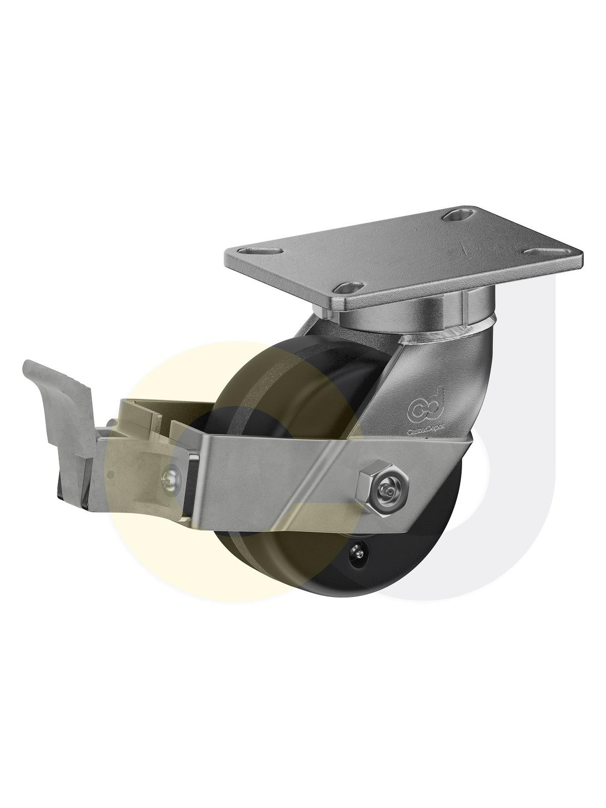 Description 6 x 3" Zinc-Plated, Kingpinless Swivel Caster w/ Face Contact Brake