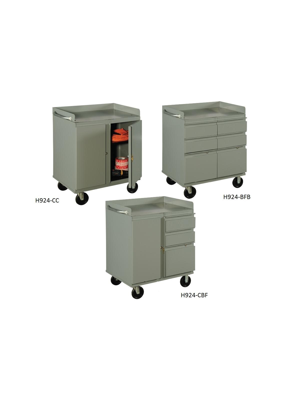Drawers have full extension drawer slides, rated at 125 lbs. per drawer. Heavy duty 14 gauge work surface with 3" back and end stops. Heavy duty 5" casters (2 rigid, 2 swivel with brakes). Powder coated finish. Standard color is Gray. FOB Shipping Point.