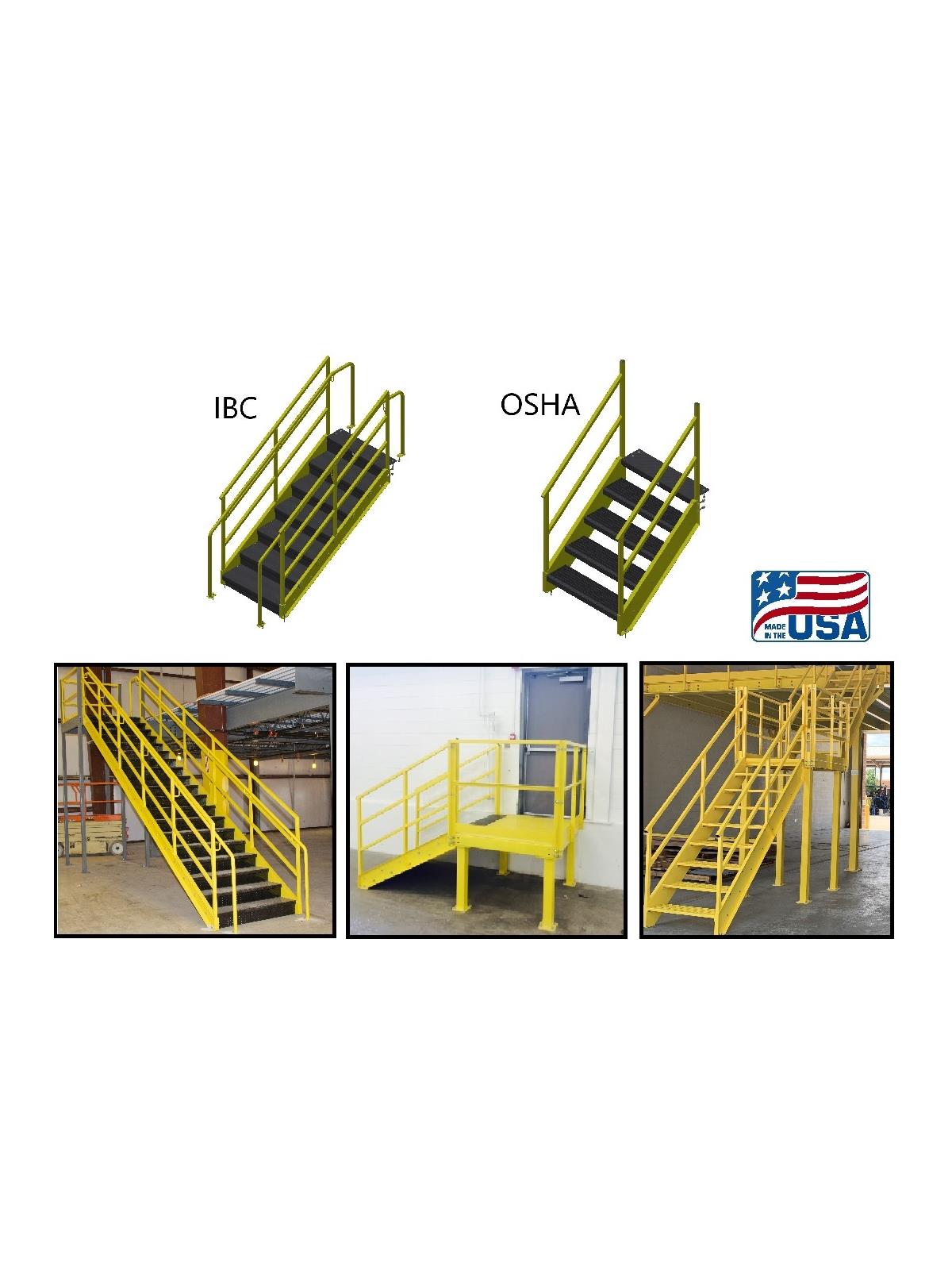 Bluff's Stairways and Landings are designed and manufactured to meet specific application requirements, and are engineered with value and code compliancy in mind. Stairways can be integrated with landings, mezzanines, work platforms, conveyor crossover or towers. IBC and OSHA models available. Contact us for a quote. Made in the U.S.A.